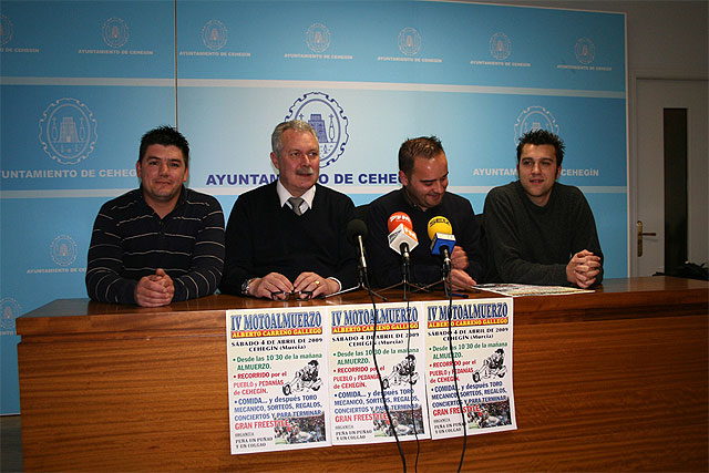 El alcalde José Soria y el concejal de Deportes, Antonio Marín, junto a dos de los organizadores de este evento, han presentado la cuarta edición de esta reunión de moteros, que el pasado año contó con 750 inscripciones. El itinerario será como en años anteriores: se realizará un almuerzo por la mañana; a continuación, un recorrido por el pueblo y las pedanías; y se terminará con los típicos arroces en la Gran Vía, sorteos y regalos.