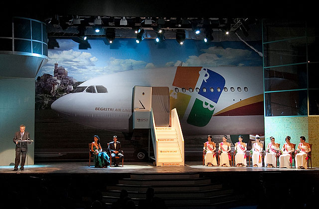 La Sala Camelot se convirtió en un espectacular aeropuerto, de la compañía ‘Begastri Air Lines’, dirigida por el capitán Héctor Madrona, que volvió a conducir la gala más especial del año. Durante ésta, la Reina saliente, Miriam Sánchez, cedió su corona a una espectacular Fina Guillén, quien representará a la localidad en todos los actos oficiales que se realicen este año.