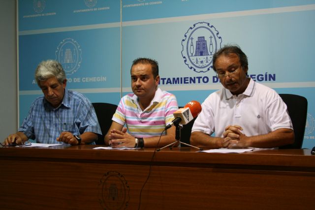 El presidente de la Agrupación Deportiva Cehegín Atlético, Juan Reina, junto al directivo del club Rosendo Berengüi y el concejal de Deportes del ayuntamiento de Cehegín, Antonio Marín, han hecho público el fallo de los XXIX Premios al Deporte Murciano, que otorga el club cada año.