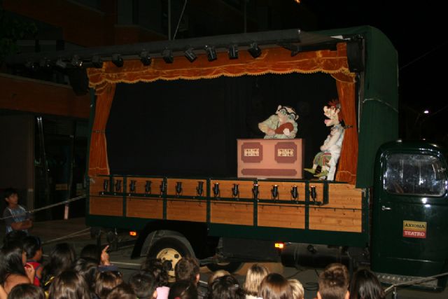 Los andaluces Axioma llegaban a Cehegín en un antiguo camión EBRO, que creó mucha expectación. En él, los títeres de cachiporra entretuvieron durante aproximadamente una hora a los jóvenes espectadores, que salieron encantados y satisfechos con lo que acababan de presenciar.