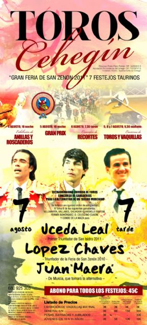 Serán siete espectáculos los que se celebrarán en Cehegín, a un precio de 45 euros el abono para todos ellos, "por lo que conseguimos los precios más bajos de la Región de Murcia, gracias a la colaboración del Ayuntamiento y de la Asociación Pro-Encierros", según Chicote.