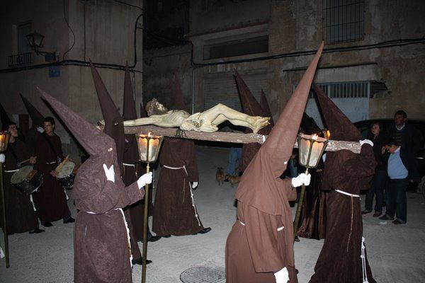A estos pasos les acompañarán multitud de nazarenos, conocidos como 'Los Marrones', las autoridades civiles y eclesiásticas, y los miembros de la Junta Central de Cofradías, al son de los tambores.