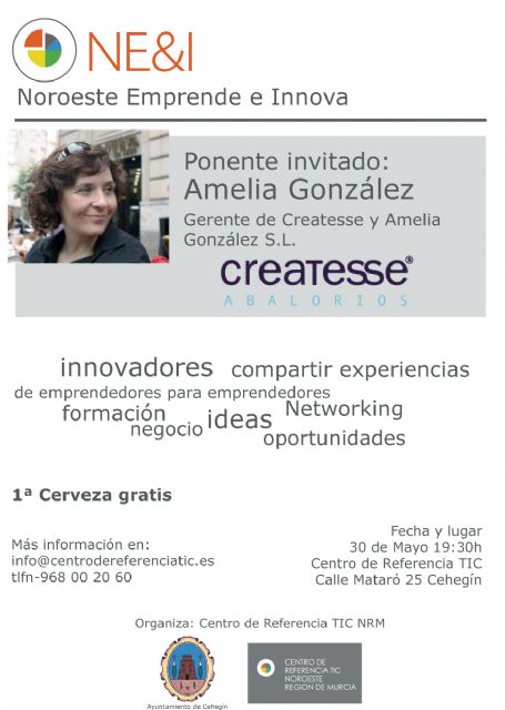 La fundadora y presidenta de la Asociación de Franquicias de Murcia 'FREMUR', Amelia González, manager general de Amelia González SL, propietaria de las franquicias Createsse, será la protagonista del próximo Noroeste Emprende e Innova 'NE&I', que tendrá lugar el miércoles 30 de mayo, a las 19.30 horas, en el Centro de Referencia TIC.