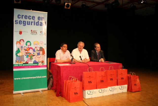 El director general del Instituto de Seguridad y Salud Laboral, Tomás Pérez, el alcalde de Cehegín, José Soria, y el concejal de Educación, Nicolás del Toro, han entregado los premios de la campaña de sensibilización sobre prevención de riesgos laborales en el ámbito educativo 'Crece en Seguridad'.