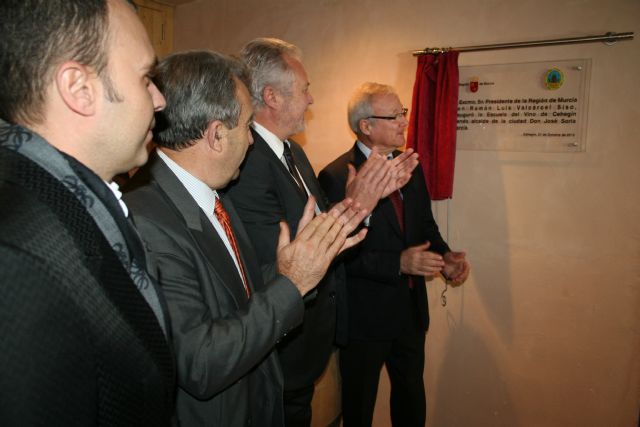 El presidente de la Comunidad Autónoma de la Región de Murcia, Ramón Luis Valcárcel, y el alcalde de Cehegín, José Soria, asistieron anoche a la inauguración de la Escuela del Vino, un espacio que abre sus puertas con el objetivo de convertirse en un referente de la formación en torno al mundo del vino tanto de profesionales como de todos aquellos que quieran acercarse por primera vez a este mundo, así como de ser un nuevo y atractivo producto turístico del municipio, que se suma a su amplia oferta cultural, histórica, gastronómica y natural. Al acto también asistieron el consejero de Agricultura y Agua, Antonio Cerdá; el director general de Turismo, Enrique Ujaldón y el concejal de Turismo de Cehegín, Francisco Abril, entre otros.