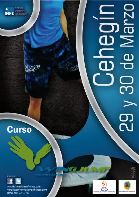 El curso se divide en dos días con los siguientes horarios, sábado 29 de de 10:00 a 14:00 horas y de 16:00 a 20:00 horas y domingo 30 de marzo de 10:00 a 14:00 horas y un examen a las 16:00 horas. El precio de este curso es de 199 euros y está organizado e impartido por el Instituto de Fitness y Entrenamiento, con la colaboración de la Concejalía de Deportes de Cehegín. Al término del curso todos los que hayan superado obtendrán el Certificado de Instructor de Wingjump oficial del INFE.