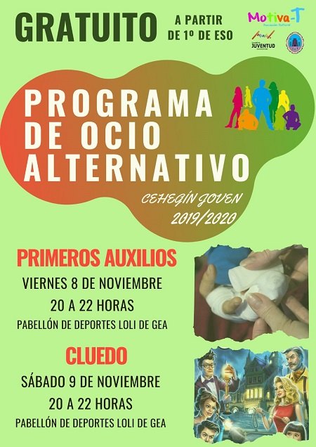 Dentro del Programa de Ocio Alternativo, puesto en marcha por la Concejalía de Juventud, que dirige José Antonio Zafra, tendrán lugar, este fin de semana, dos talleres gratuitos a los que todos los interesados pueden inscribirse en el Espacio Joven de Cehegín.