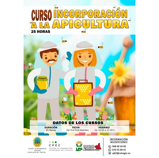 UPA, Unión de pequeños Agricultores y Ganaderos de Murcia, en colaboración con la Concejalía de Agricultura del Ayuntamiento de Cehegín, que dirige Pedro Lorencio, ha dado nuevas fechas para el curso denominado “Incorporación a la apicultura”, que fue aplazado por motivos de la pandemia que vivimos en la actualidad.