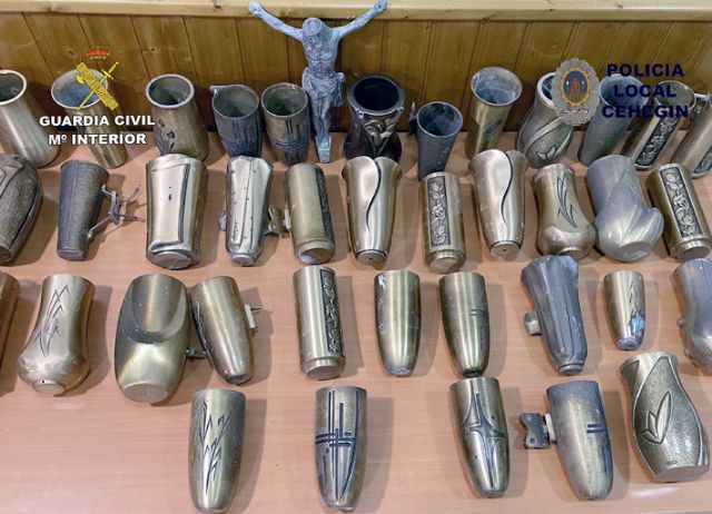 La investigación se inició el pasado mes de septiembre, cuando varios vecinos del municipio ceheginero denunciaron ante la Guardia Civil haber sido objeto del robo de piezas de ornamentación de los nichos familiares ubicados en el Campo Santo de Cehegín.