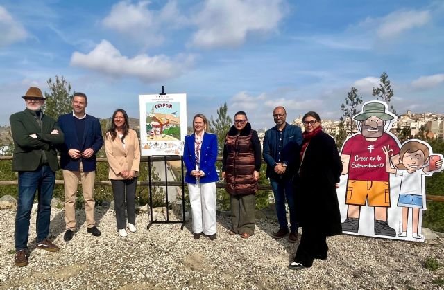Una nueva ilustración original del humorista gráfico José Manuel Puebla, enmarcada en el proyecto ´Peregrinos en el Camino', se incorpora al paisaje de la ruta en el municipio de Cehegín, "una apuesta por seguir avanzando en el fomento del Camino de Levante", según la consejera de Turismo, Cultura, Juventud y Deportes, Carmen Conesa.